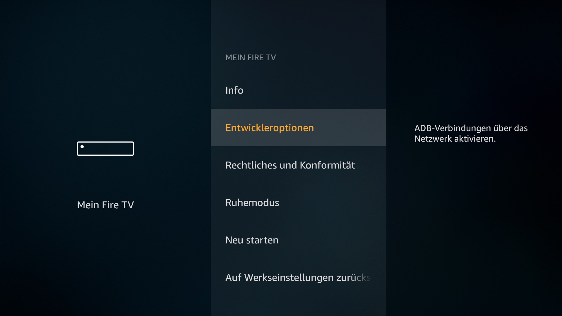 - Dann sehr weit rechts “Mein Fire TV” öffnen (früher hieß der Eintrag “Gerät”)