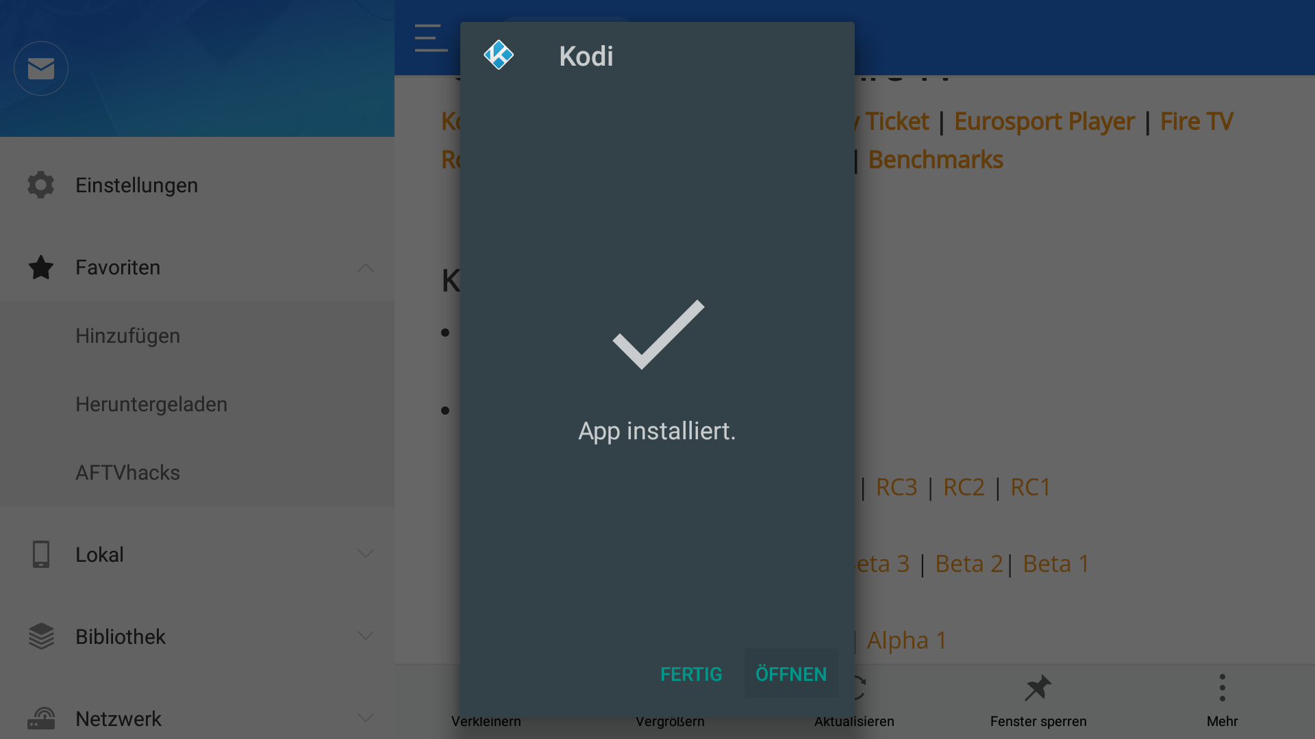 - Auch das erfolgreiche Installieren unter FireOS6 wird sichtbar bestätigt.