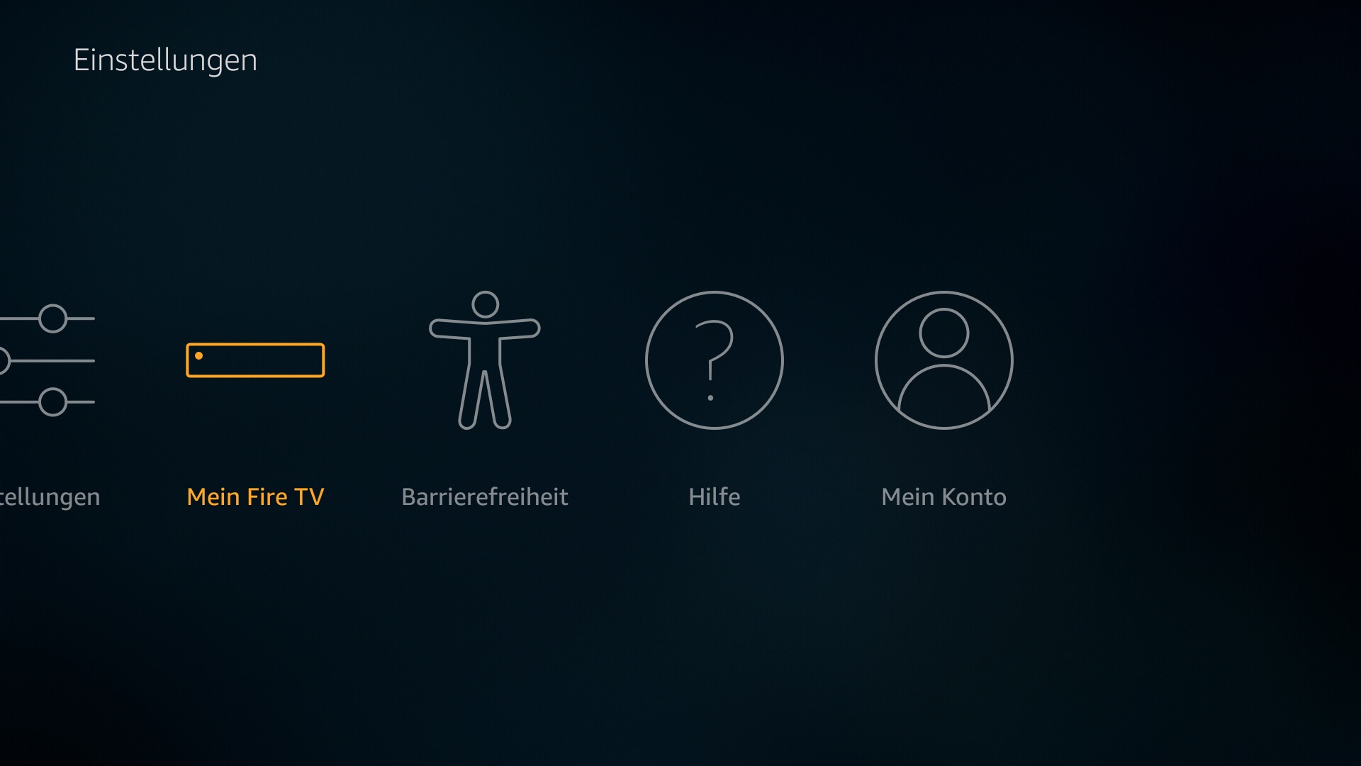 - Im Fire TV Hauptmenü ganz nach rechts auf “Einstellungen” klicken