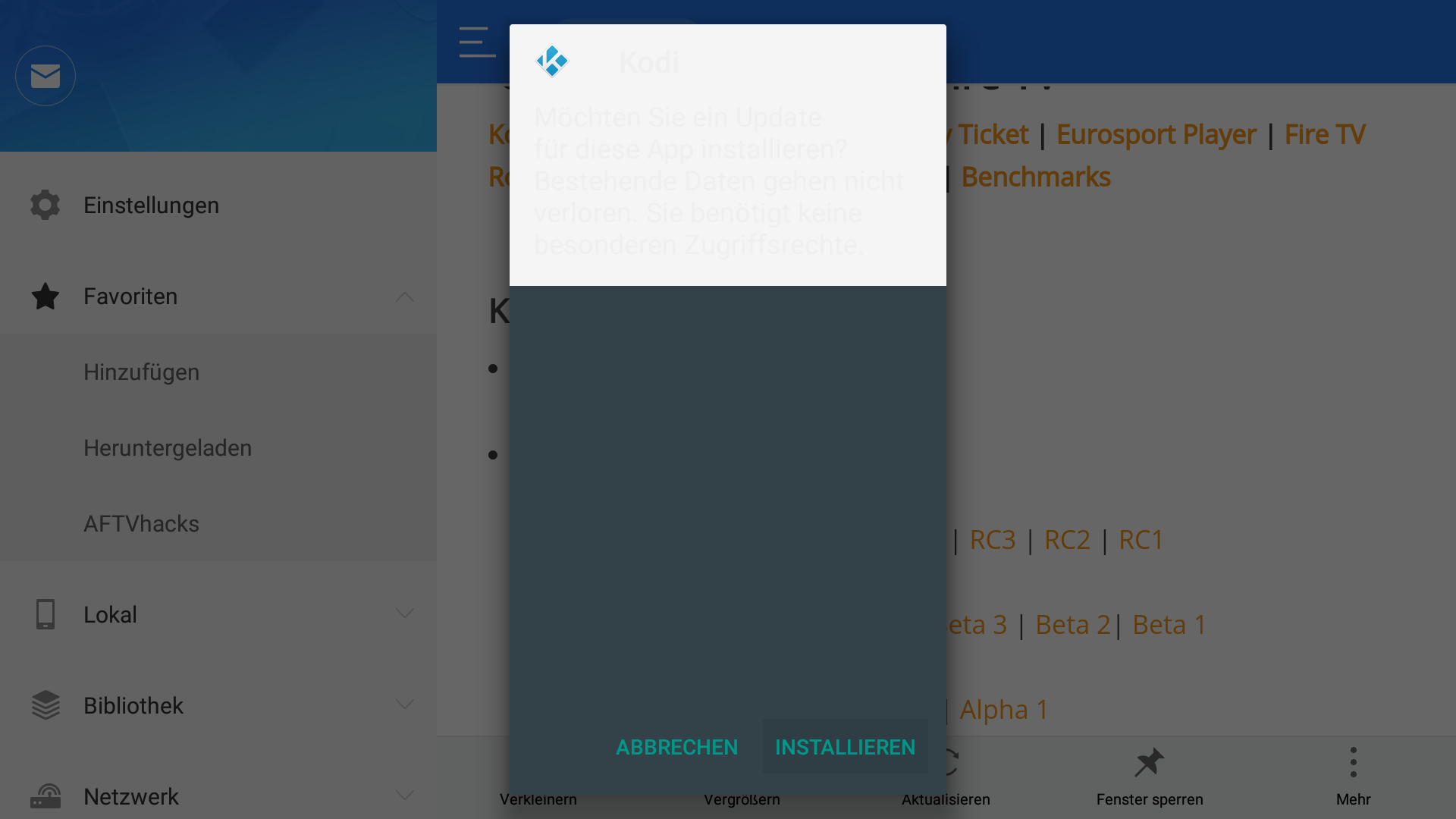 - Der Installationsfortschritt von Kodi 18.3 wird in FireOS6 wieder sehr gut sichtbar angezeigt.