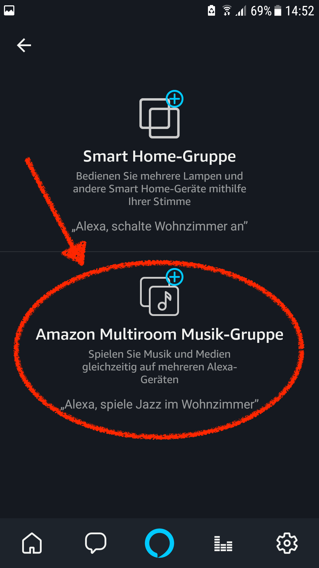 - Anschließend klickt Ihr auf Amazon Multiroom Musik-Gruppe, um eine neue Multiroom-Gruppe anzulegen