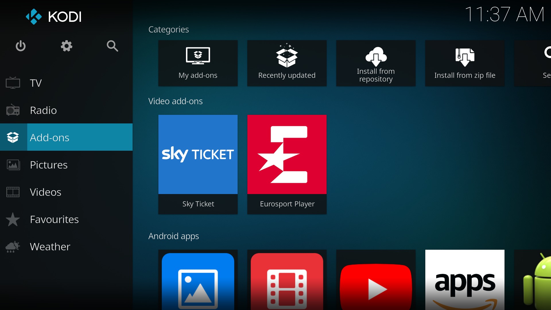 - Anschließend fast ganz unten den Eintrag Video add-ons auswählen