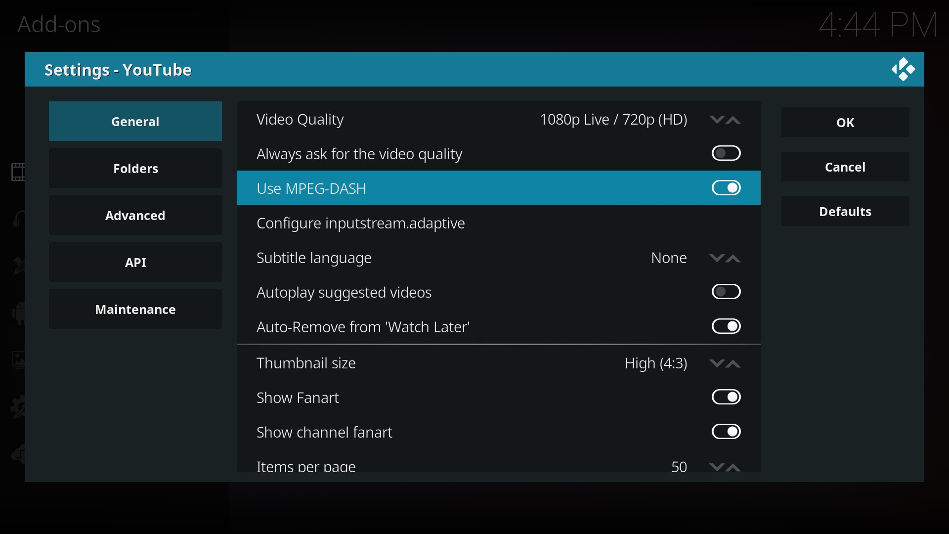 YouTube Kodi Add-On auf 1080p einstellen