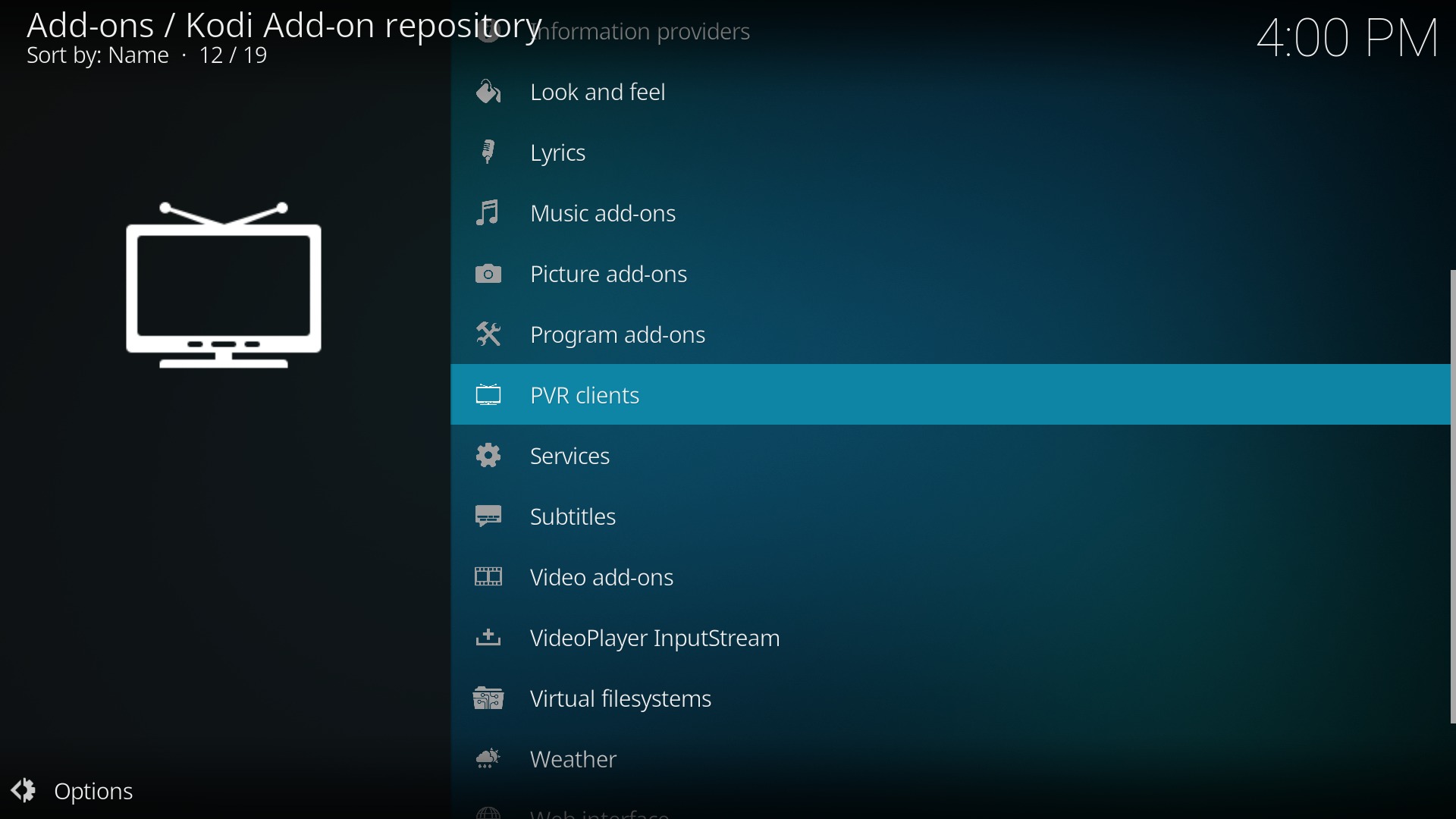 - Anschließend sucht Ihr nach PVR Clients und klickt es an
