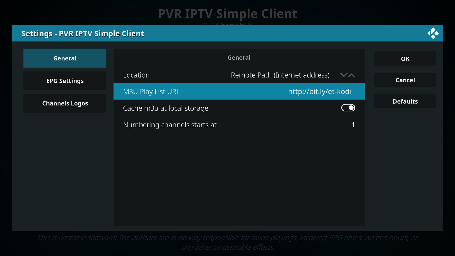 - In der Konfiguration angekommen gebt Ihr bei M3U Play List URL folgenden Text ein
