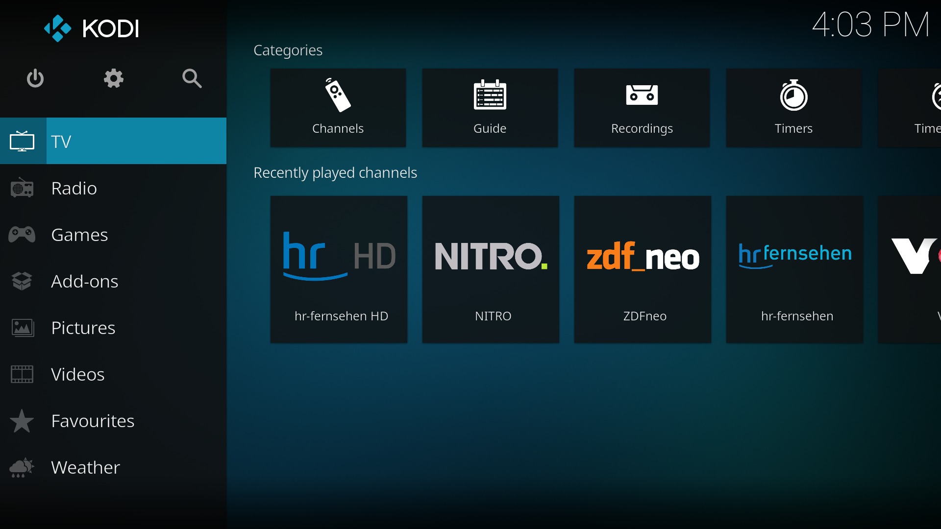 - öffnet nun links im Hauptmenü den Punkt “TV”