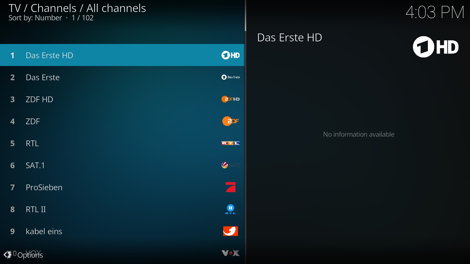 Kodinerds hat die Sender schon sinnvoll vorkategorisiert. Ihr könnt zwischen folgenden Einträgen auswählen: