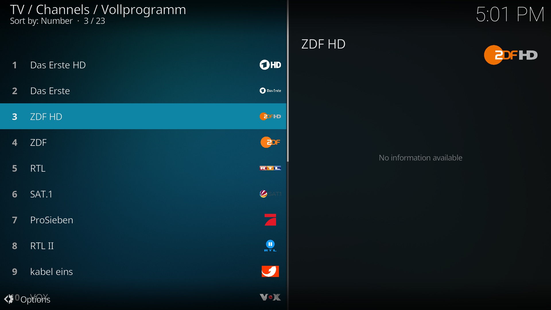 - Die vorkategorisierten Sender kann man auch untergliedern – einfach in der Channels-Liste nach links drücken und die gewünschte Kategorie auswählen