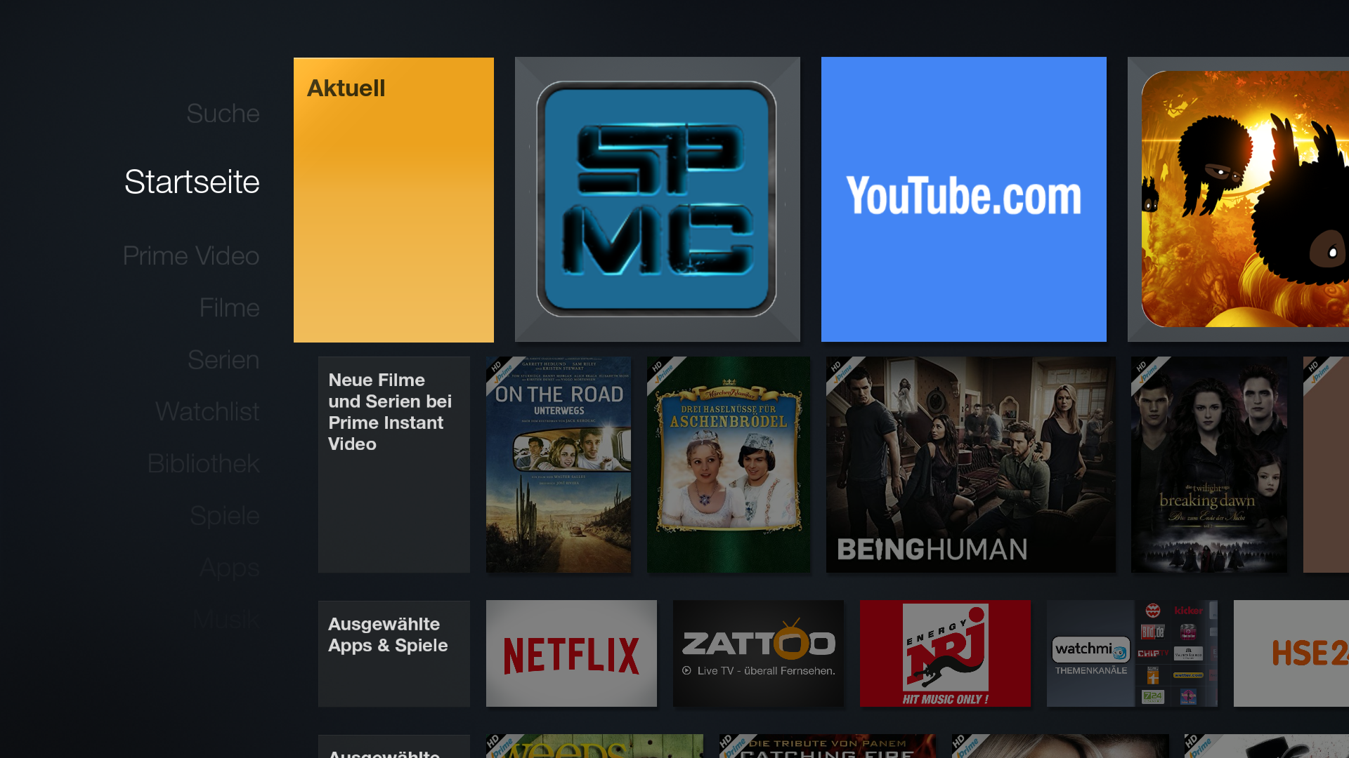 - auf der Fire-TV Startseite ist nun ein Symbol für SPMC zu sehen, über das Ihr die App starten könnt