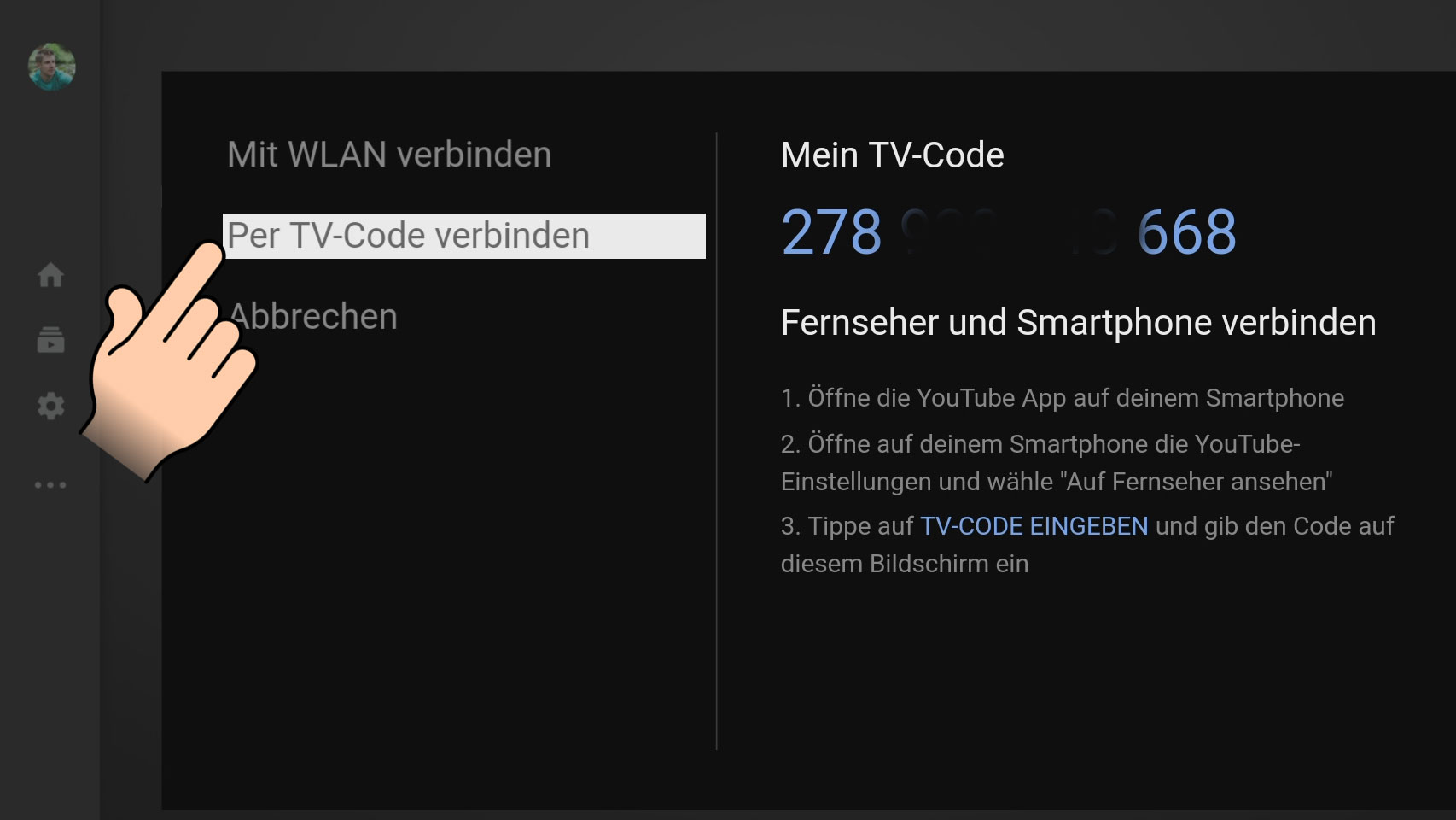 - Wählt den Punkt “Per TV-Code verbinden”