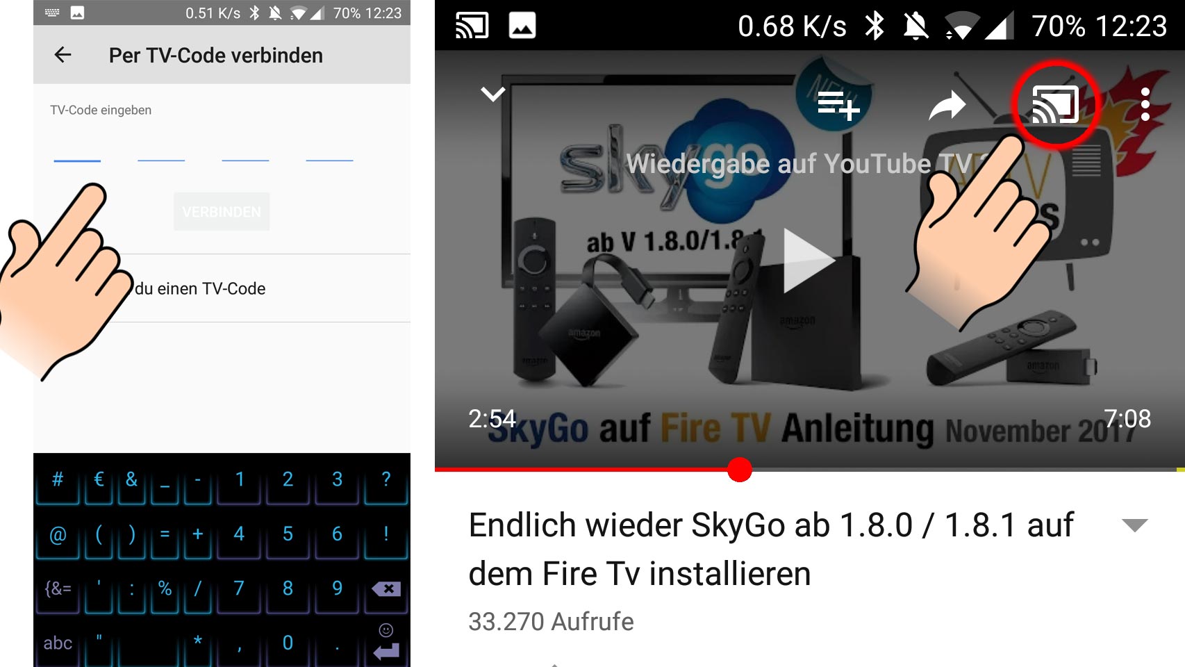 - 10. Nach Eingabe des Codes ist euer Smartphone verbunden und ihr seht wieder das Symbol in YouTube.